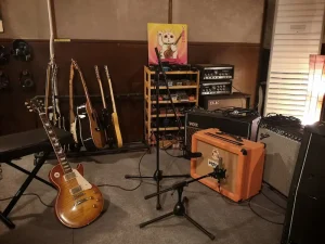 As a destination studio, we understand that travelling artists cannot always bring their own equipment. We therefore provide a curated selection of professional instruments, including Fender Jazz Bass (US), Gibson Les Paul 1959 Reissue, Fender Telecaster (US), Fender Stratocaster (Japan), and Takamine DG93CE acoustic guitar. Amplification includes a Fender Twin, Vox AC30, and Marshall JCM series cabinet, along with a full range of pedals.